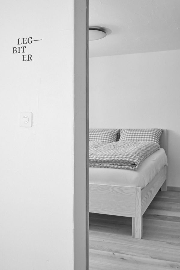 Mit viel Liebe, Sorgfalt und Enthusiasmus haben wir das alte Gasthaus renoviert und ins «Gästehuus Schwert» verwandelt. Unser Gästehuus verfügt über acht helle und gemütliche Doppelzimmer mit Dusche und WC. Eine grosse, komplett ausgestattete Gemeinschaftsküche steht allen Gästen zur gemeinsamen Nutzung zur Verfügung. Unsere Betten sind aus reinem Eschenholz und ohne jegliches Metall angefertigt. Der Bettinhalt und Bettwäsche sind für Allergiker*innen geeignet.