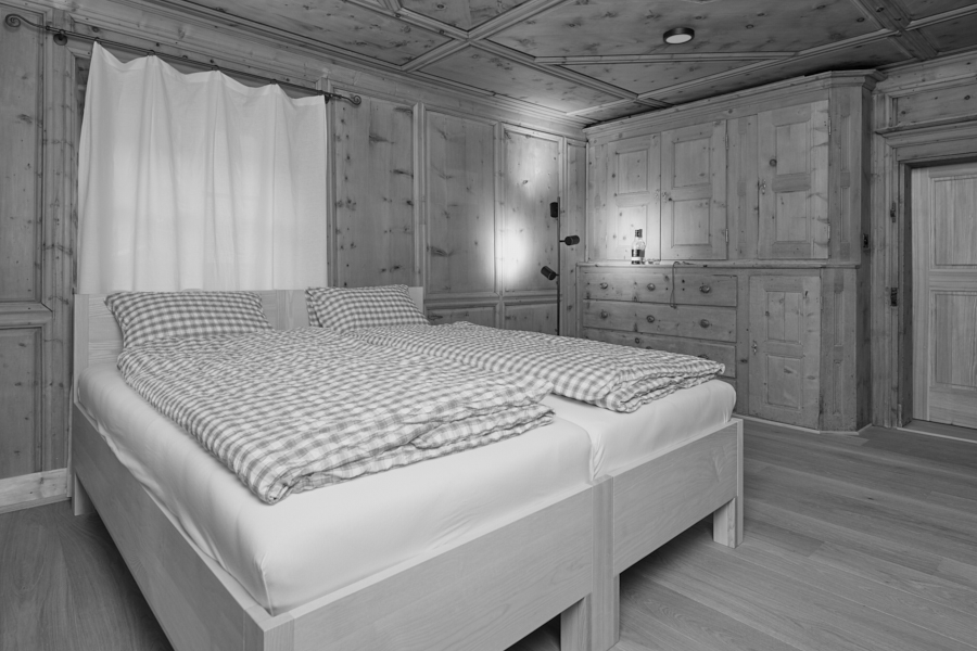 Fühlen sie sich wie ein König im Arvenstübli. Das sehr besondere Holz, dass einige Hundert Jahre auf dem Buckel hat, gibt diesem Zimmer den ganz speziellen Scharm.