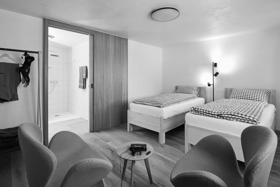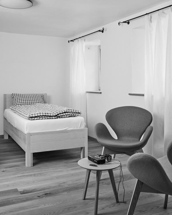 Alle unsere Zimmer sind mit Dusche und WC ausgestattet. Die Betten sind metallfrei und aus Massivholz gefertigt. Sie können als Einzel- oder als Doppelbetten konfiguriert werden. Die Bettwaren sind speziell für Allergiker*innen geeignet.
